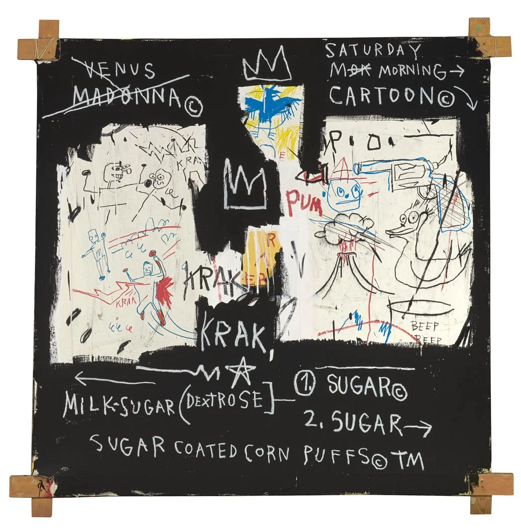 Jean Basquiat, A Panel of Experts, 1982, I really liked how you could see the frame that he made himself. The painting is acrylic and oil pastel on paper that is mounted on canvas, with the wood of the frame sticking out. This piece stood out to me because it wasn’t “polished” and you could see the messy brush strokes and the layers of the work. It was interesting to see his painting in the same gallery alongside some of the older paintings with expensive ornate frames even though they are so different in construction and subject matter, they are still appreciated in the same way.